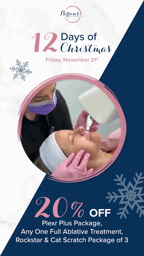 🎶 On the 3rd day of Christmas, Parsons Dermatology gave to me… 20% off Plexr Plus packages! 🎁 Full Ablative – 20% OFF any one treatment 🎁 Rockstar & Cat Scratch – 20% OFF Package of 3 This is your chance to experience revolutionary, non-surgical skin rejuvenation at an incredible price! From fine lines and…
