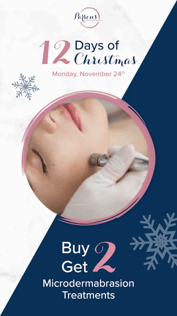 🎶 On the 4th day of Christmas, Parsons Dermatology gave to me…Buy 2 Microdermabrasions, get 2 complimentary. Give yourself a younger-looking complexion or treat light scarring, discoloration, sun damage and stretch marks with our microdermabrasion procedure. Smooth, refreshed, and ready for the holiday season! 🎄 ✨Get double the glow when you book now! 📆 Offer…