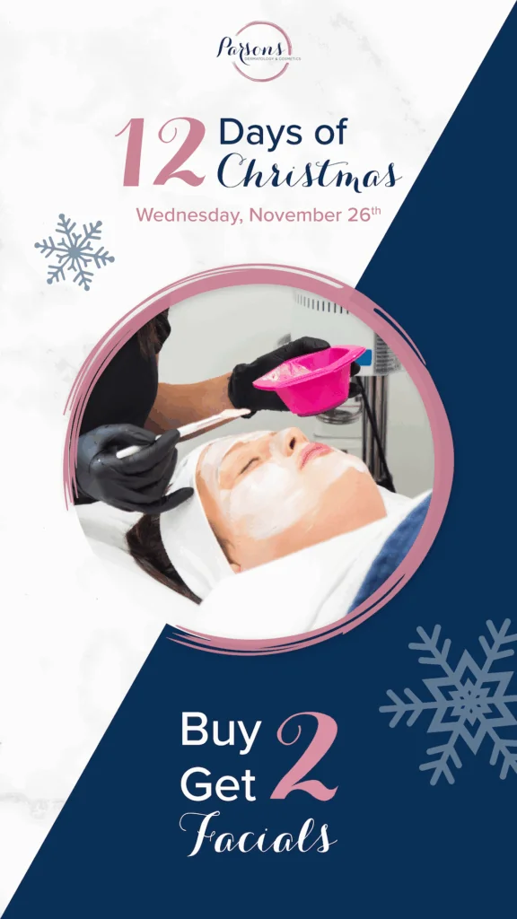 🎶 On the 5th day of Christmas, Parsons Dermatology gave to me… Buy 2 facials, get 2 complimentary. The ultimate self-care gift: deep cleanse, hydrate, and glow your way into the holidays. ✨ Perfect for pampering or gifting! 💆♀️🎁 Relax, refresh, and reveal your best skin with our Medical Facials to keep you glowing through…