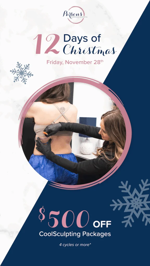 🎶 On the 6th day of Christmas, Parsons Dermatology gave to me… $500 OFF CoolSculpting Packages (4 cycles or more) ❄️Minimum payment $2,476 ❄️Start sculpting your way to confidence for the new year with Coolsculpting! Coolsculpting is the ultimate, non-surgical way to safely freeze away unwanted fat cells in areas like the abdomen, thighs, and…